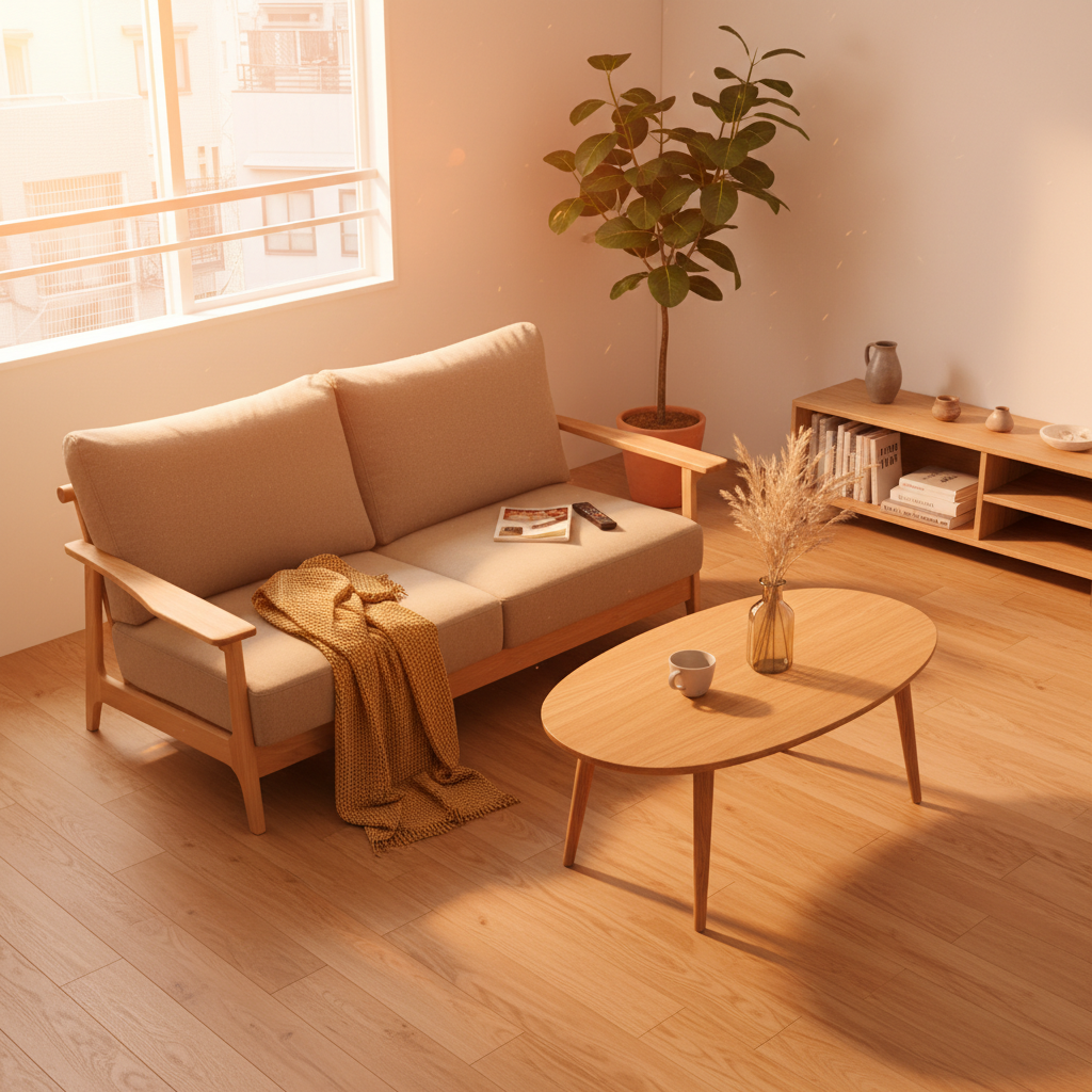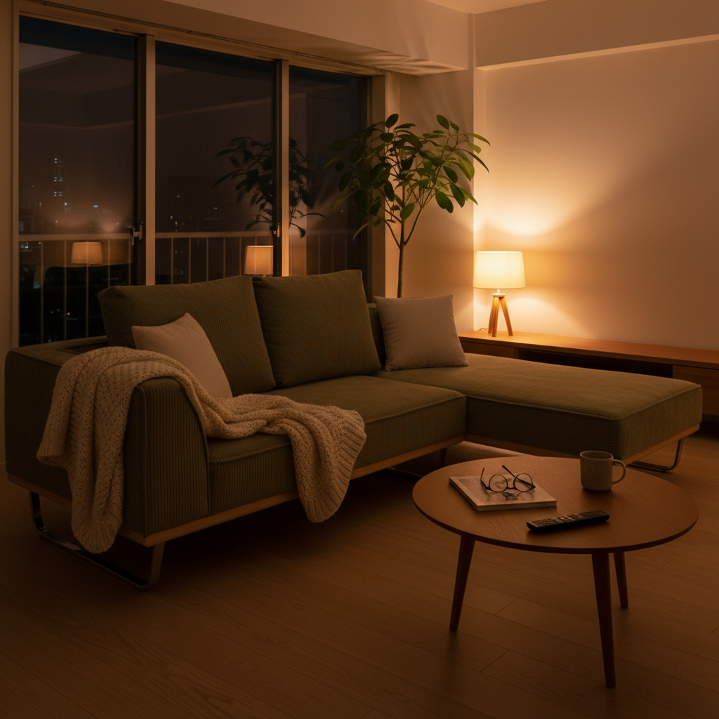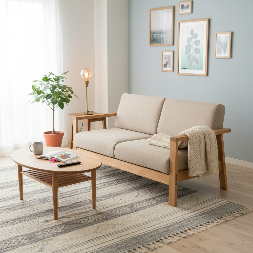 また、壁に密着させて設置すると通気性が悪くなりカビの原因になったり、壁紙への色移りが起きたりするリスクがあるようです。このソファの魅力を最大限に活かすには、壁から少し離して配置できるような、周囲にゆとりのあるスペースを確保することが何よりも大切になります。