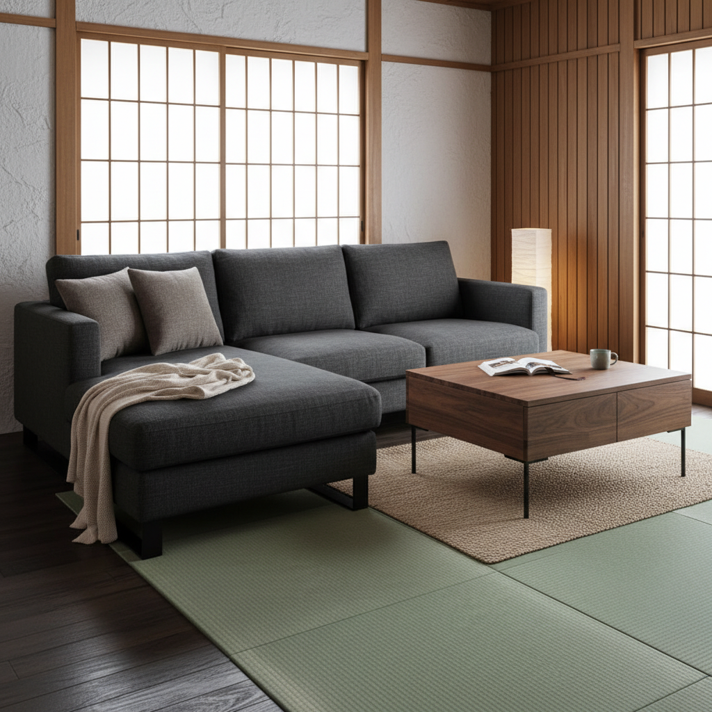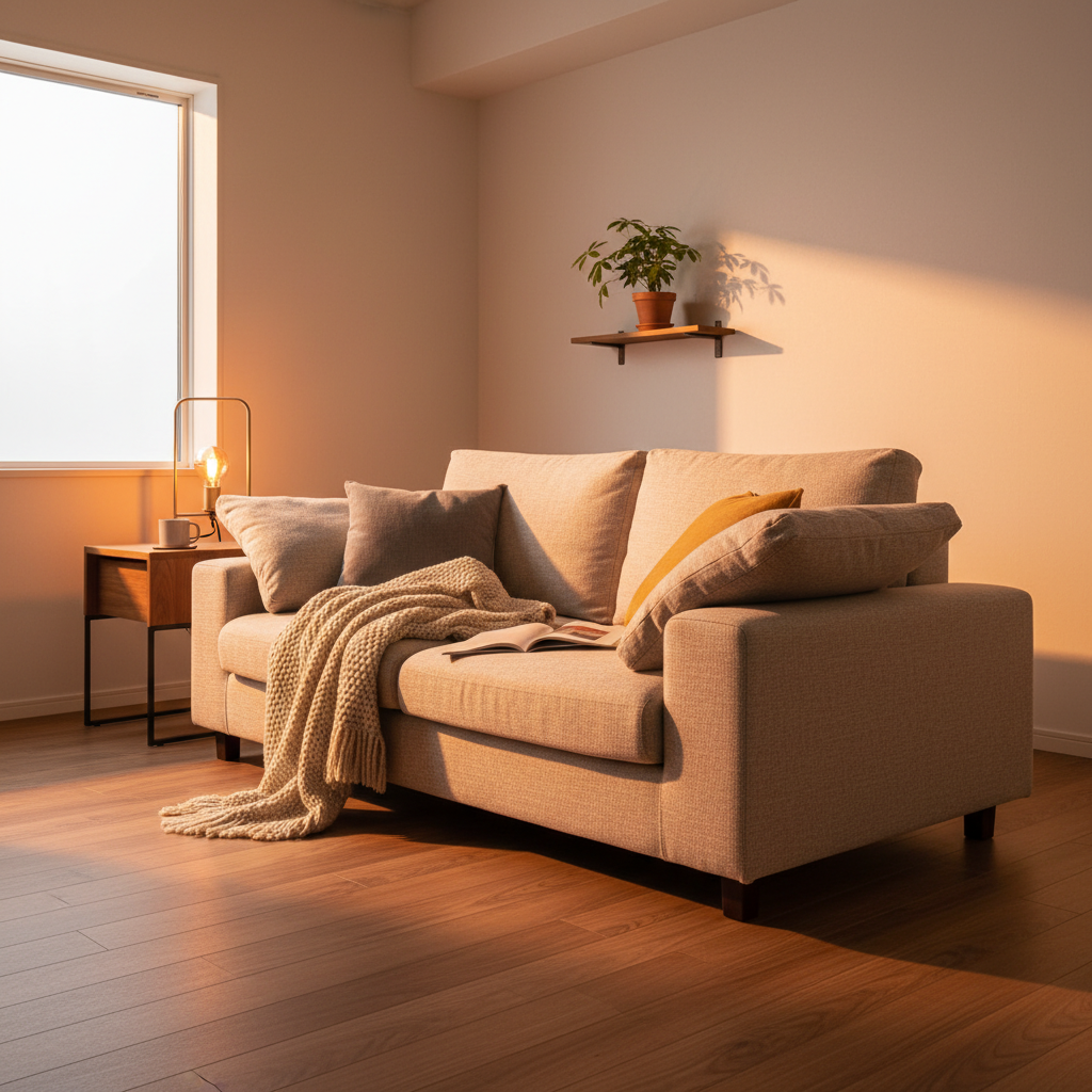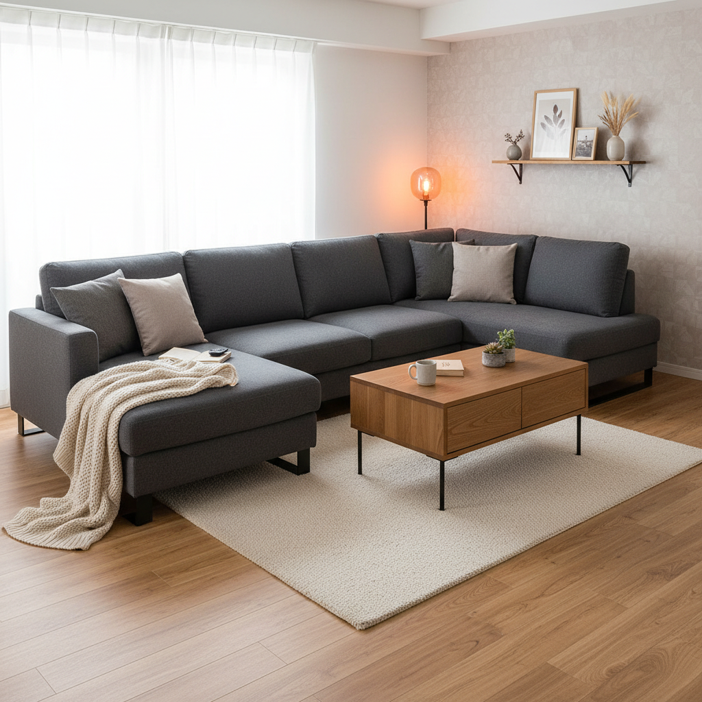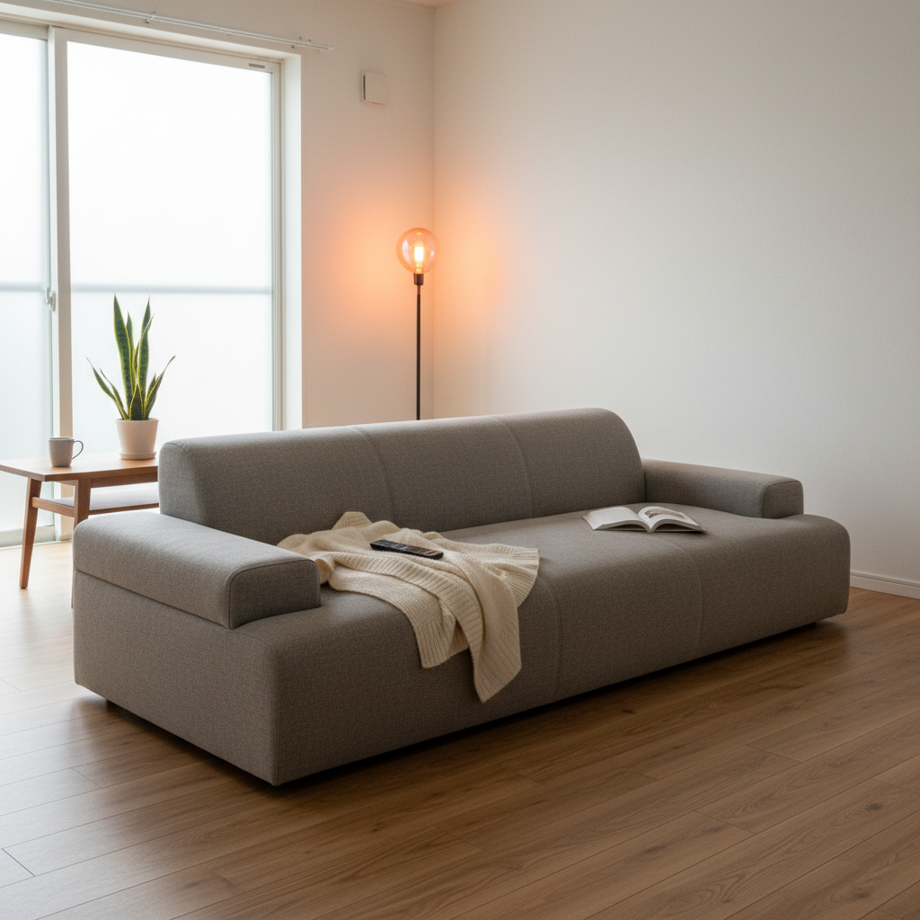 また、壁に密着させて設置すると通気性が悪くなりカビの原因になったり、壁紙への色移りが起きたりするリスクがあるようです。このソファの魅力を最大限に活かすには、壁から少し離して配置できるような、周囲にゆとりのあるスペースを確保することが何よりも大切になります。